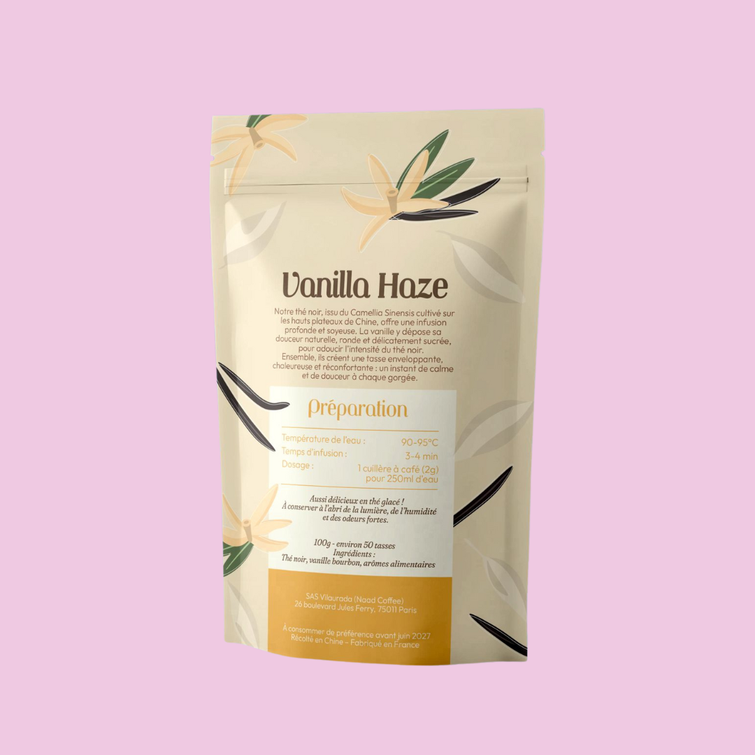 Vanilla Haze est un thĂ© noir en vrac dĂ©licatement parfumĂ© Ă la vanille, pensĂ© pour les amateurs de thĂ©s gourmands et rĂ©confortants. Son profil aromatique doux et enveloppant mĂȘle la profondeur du thĂ© noir Ă des notes chaudes et crĂ©meuses de vanille naturelle.